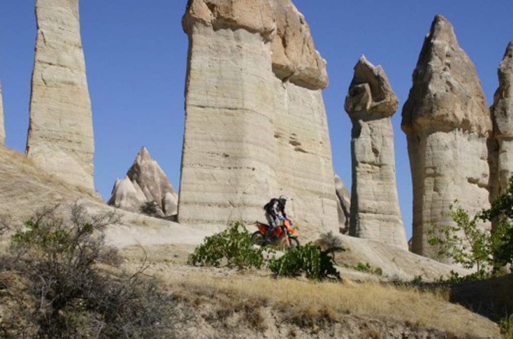 Kappadokien, eine 300 Quadratkilometer große Mondlandschaft mit Höhlenkirchen und unterirdischen Städten ist ein Höhepunkt dieser Endurowanderung. Hier, wo sich einst die ersten Christen vor den Verfolgungen durch die Römer versteckten, eröffnet sich uns ein Enduroparadies, das weltweit Seinesgleichen sucht.